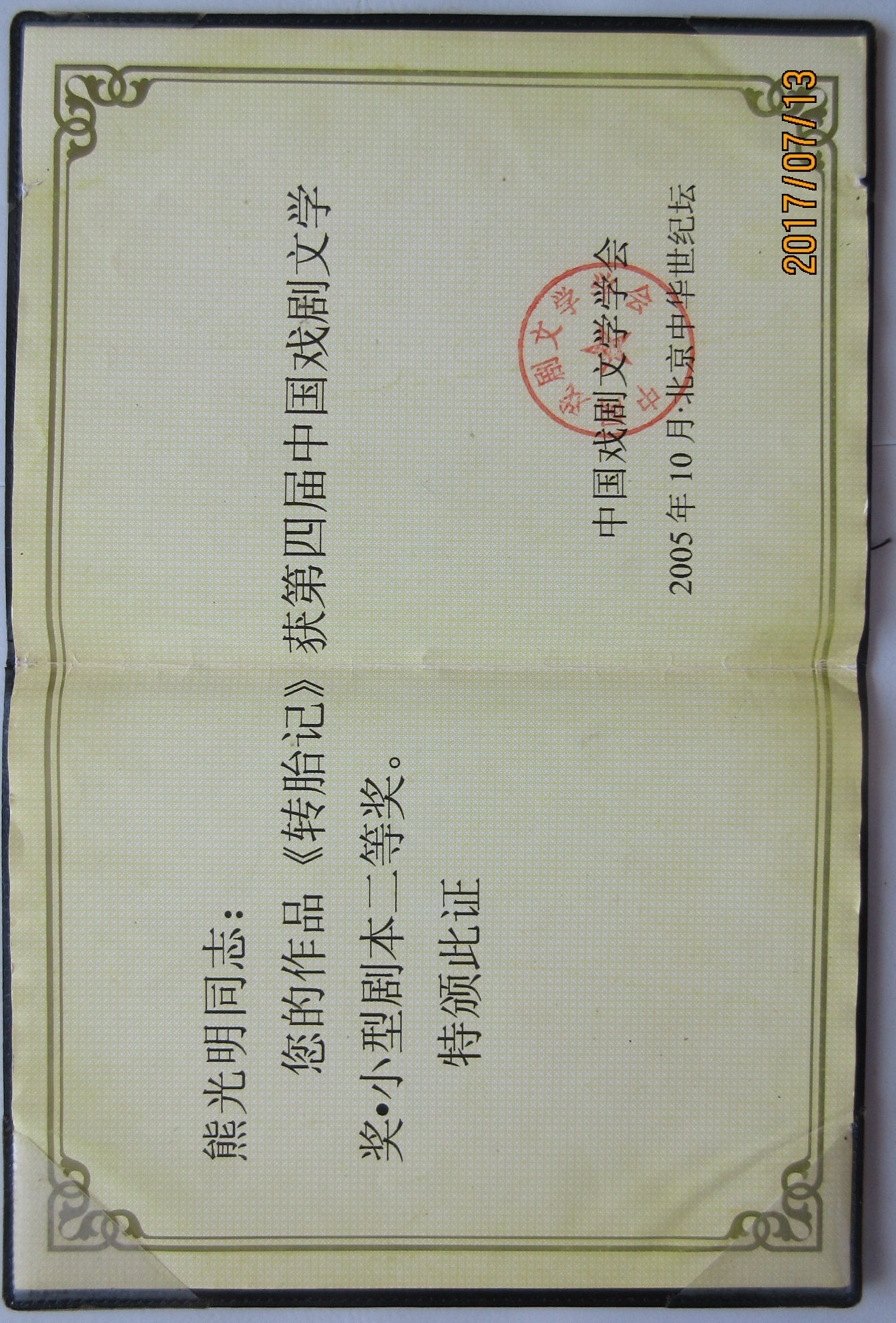 12、2005中国戏剧文学奖小型剧本二等奖