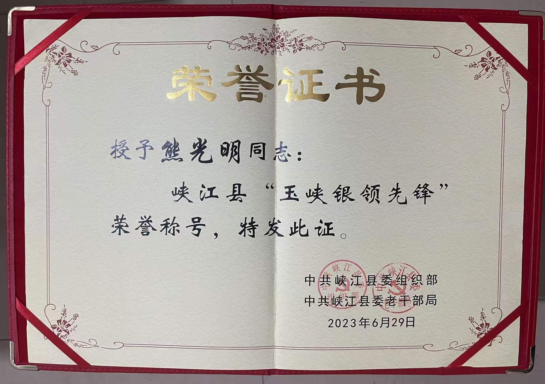 17、2023年“玉峡银领”先锋称号证书