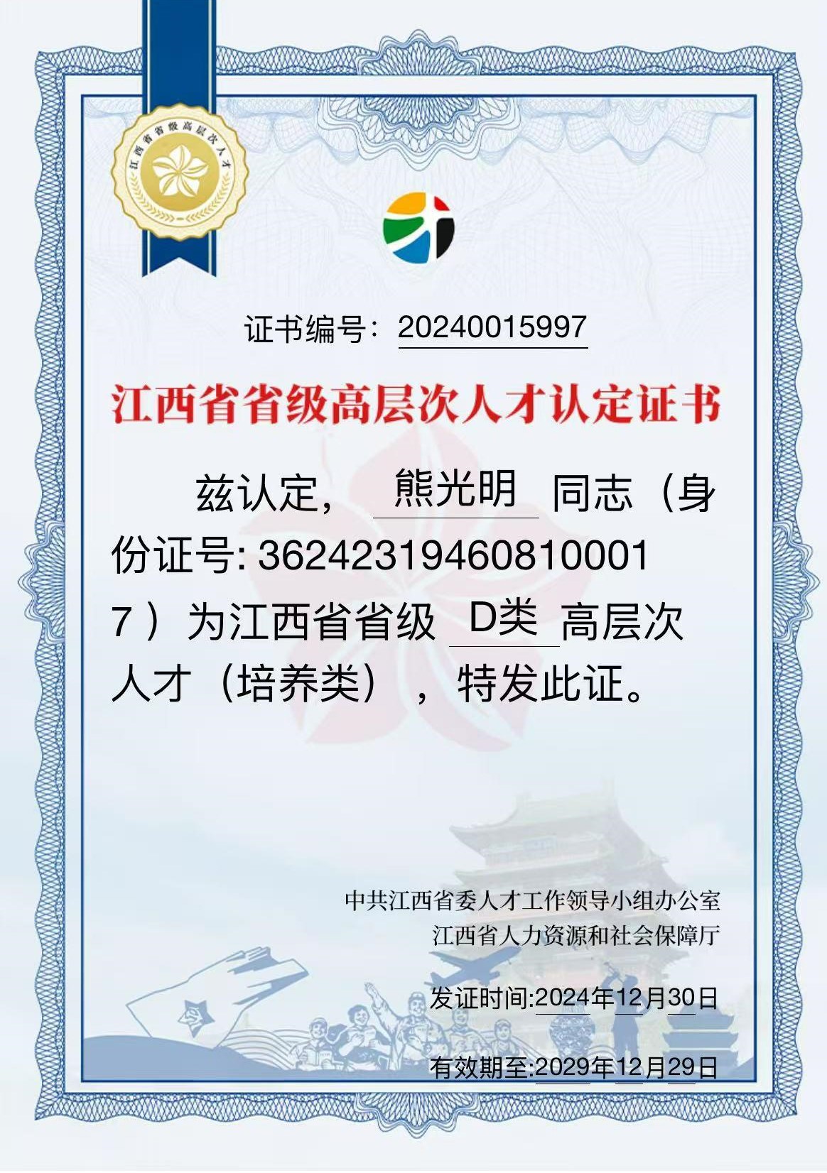 19、2024高层次D类人才证书