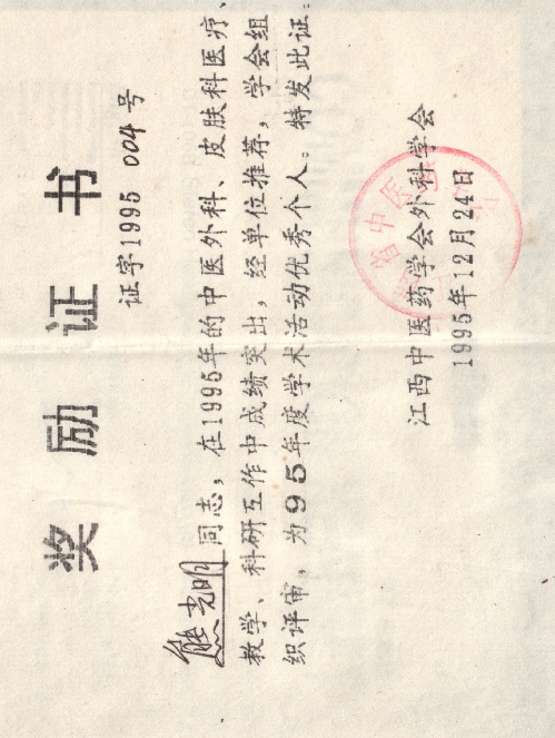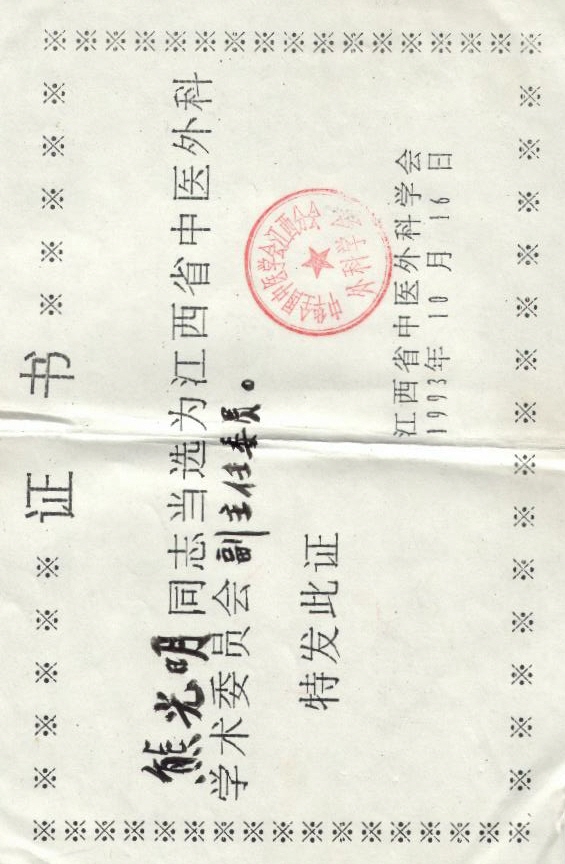 4、 1993省中医外科学会学术委员会副主任证