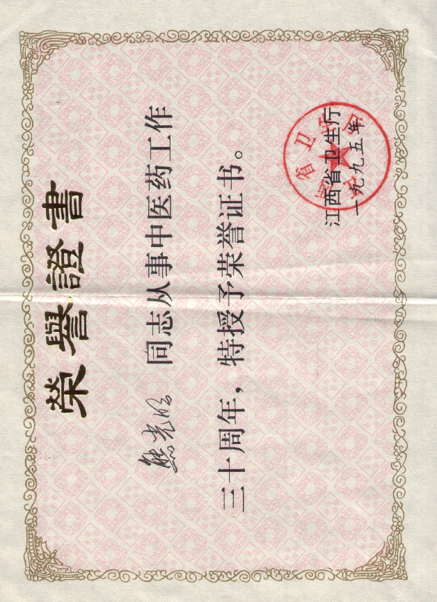 5、1995从事中医30年证书